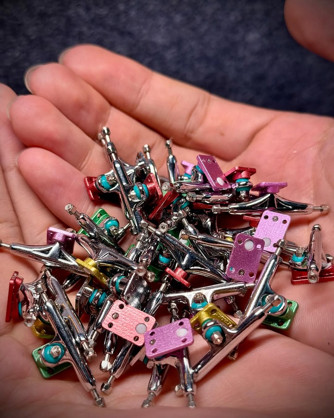 The XOANA TRUCKS II is a piece of art with its precision polishing and painting. These complex processes make each truck one of a kind. The height is perfect for fingerboarders of all levels. Forget about wobbly rides. The thickened stainless steel axles lock your wheels down for a rock-solid, shake-free experience. Plus, the redesigned base now fits a wider range of hangers, giving you more setup options than ever before.