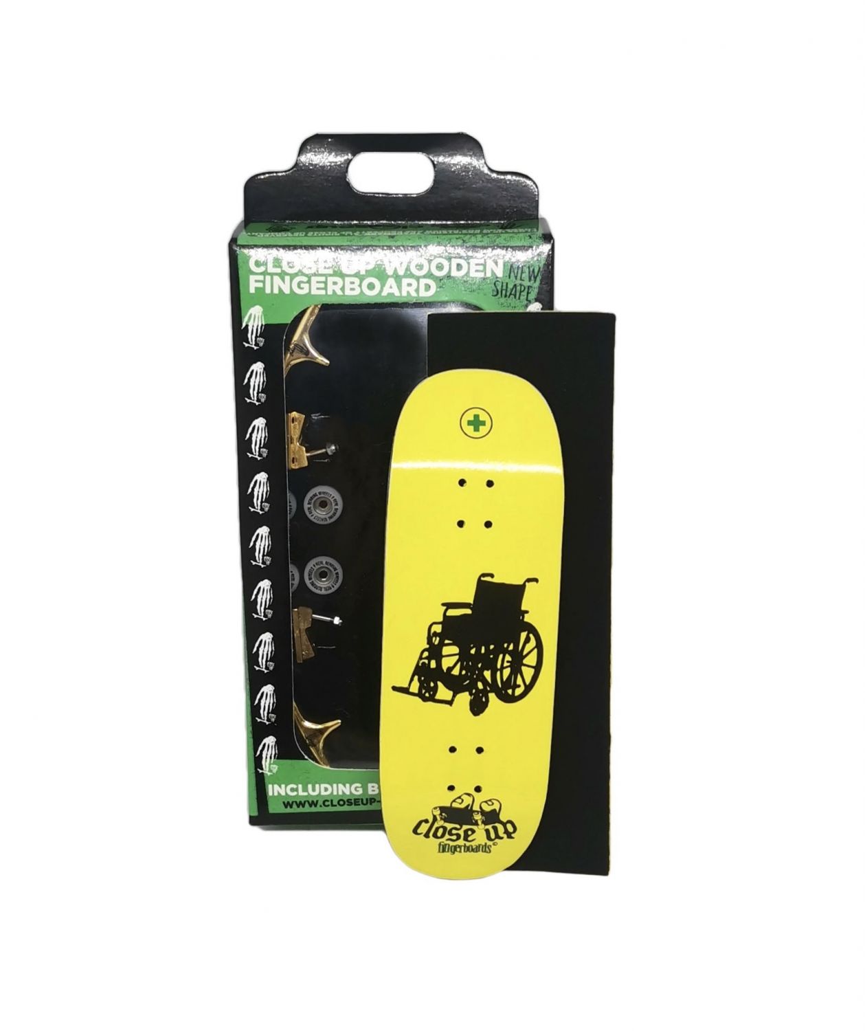 This complete wooden fingerboard set up includes a real maple plies 34 mm wide deck, medium concave with an original Close Up fingerboards logo, CNC quality bearing printed wheels, new printed trucks 34mm wide, tool and locking nuts, screws, bushings, washers necessary to assemble it your own. A rectangle rip tape is also included, to position and cut the way you prefer.