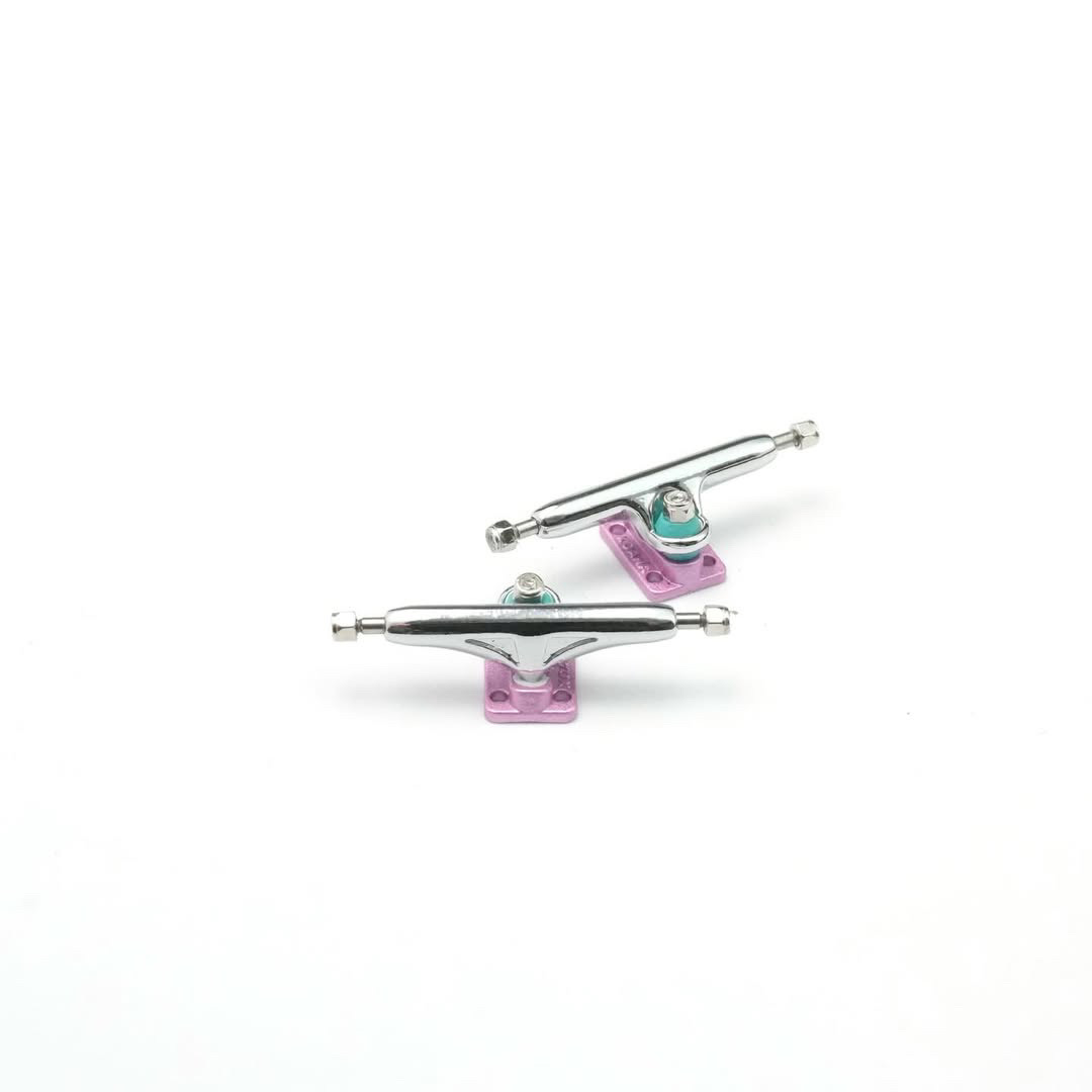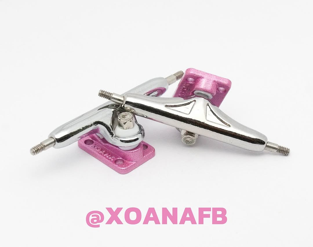 The XOANA TRUCKS II is a piece of art with its precision polishing and painting. These complex processes make each truck one of a kind. The height is perfect for fingerboarders of all levels. Forget about wobbly rides. The thickened stainless steel axles lock your wheels down for a rock-solid, shake-free experience. Plus, the redesigned base now fits a wider range of hangers, giving you more setup options than ever before.