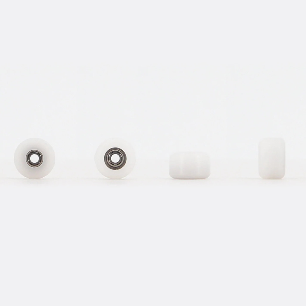 All FlatFace Wheels are made of special compounds and many of our colors have slightly different feelings for more variety! The White Wheels are our signature D material, which has defined the standard for fingerboarding bearing wheels. They are very smooth and long lasting, great all around wheel for any surface, medium hardness and medium-low amount of grip for best performance on tricks.